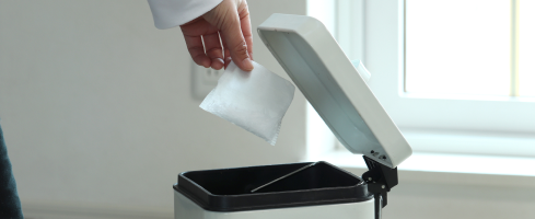 蓋つきのゴミ箱にハッカ結晶を入れるだけで開けるたびに良い香りになります。紙オムツやペットのトイレシートのごみ箱や、生ごみなどの悪臭予防にも。
